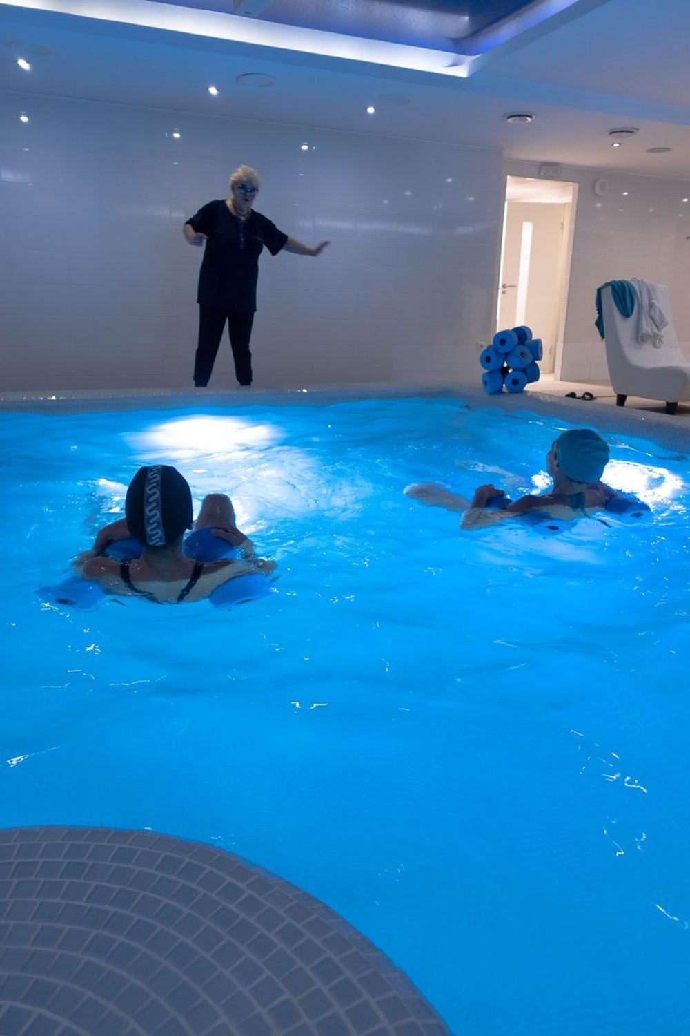 Группа подходит для девушек с 15 лет и женщин любого возраста. Занятия проходят в бассейне, глубина которого является максимально комфортной для аквааэробики и позволяет выполнять все требуемые упражнения, уверенно стоя на дне.